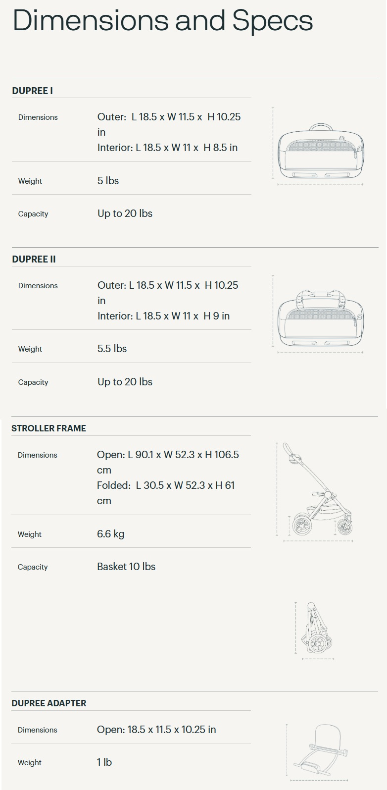 Give your life, and theirs, an upgrade. Stylish, protective, and super-portable, the Dupree Pet Travel System elevates errands, amplifies adventures, and provides pets and their parents with security, comfort and peace of mind.