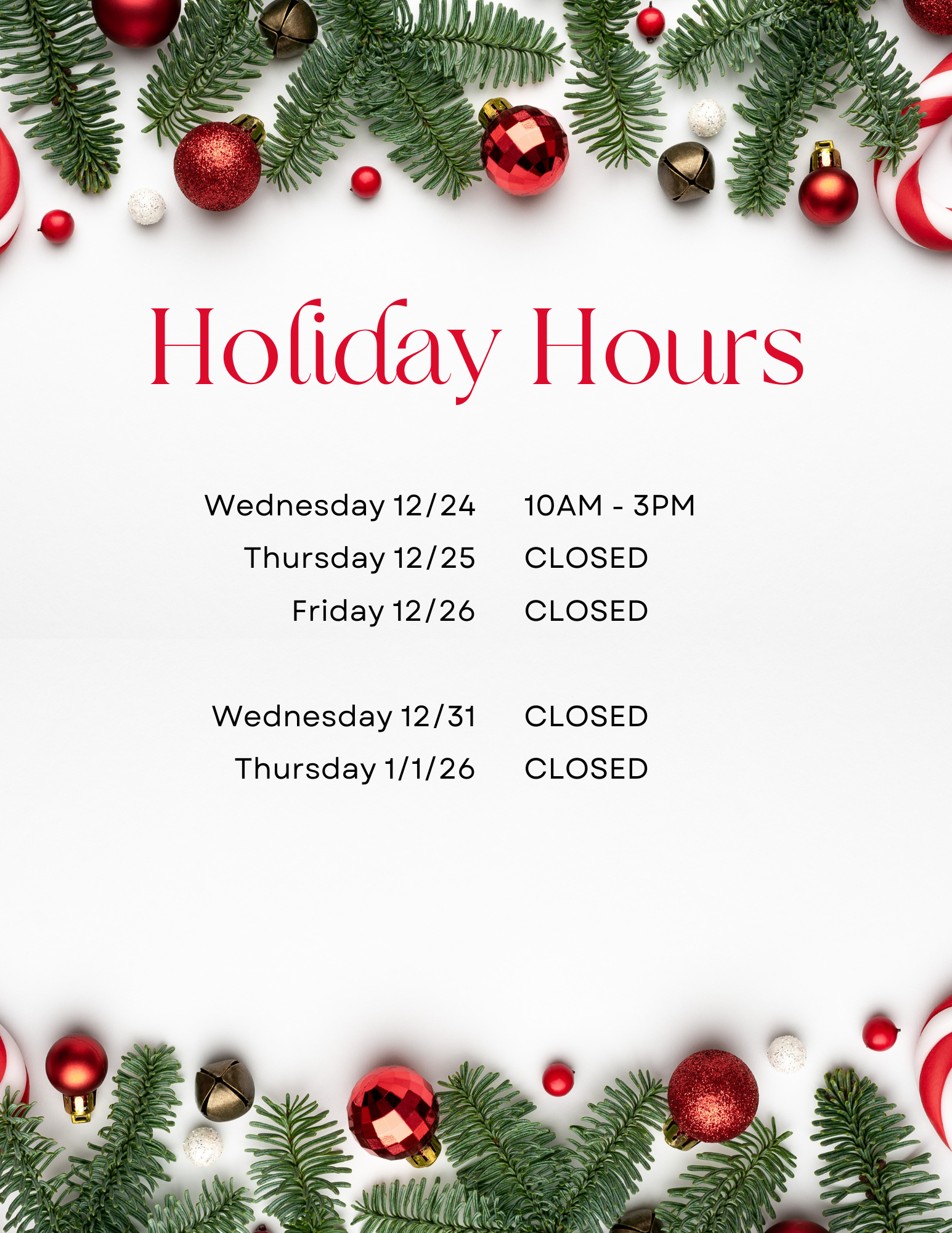 NOTE: Please note online hours are different. Our online team will be closed from December 25th thru January 2nd. They will resume normal hours on Monday, January 5th.